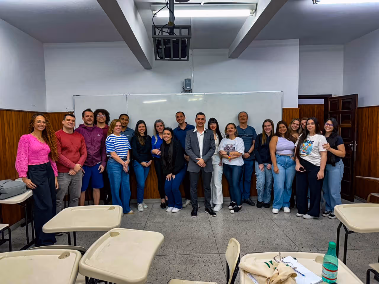A turma de Direito do Consumidor do UniAcademia recebeu a visita de Leonardo Fortuna, representante do setor de Superendividamento do PROCON Juiz de Fora, para apresentar as ações desenvolvidas pelo órgão e reforçar a importância da educação e da prevenção nas relações de consumo. A atividade ocorreu na aula do professor Pierre Portes.