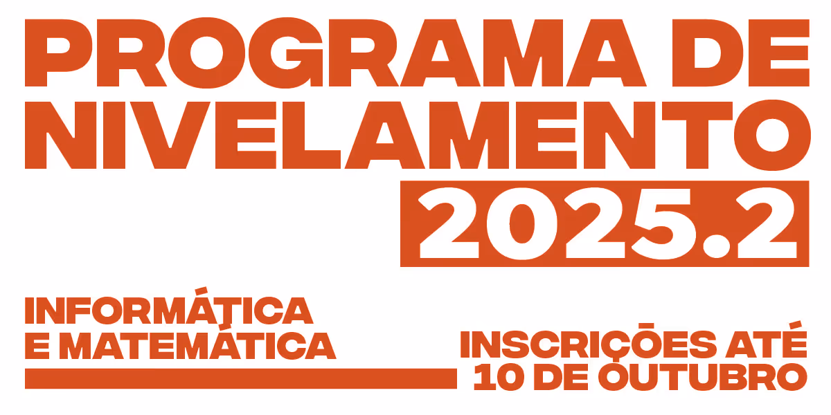 Conheça o nosso Programa de Nivelamento! As inscrições vão até o dia 10 de outubro. Os cursos acontecerão na plataforma Canvas e são abertos à comunidade acadêmica. Como o conteúdo é totalmente online — 100% EAD —, você tem a liberdade de acessar os materiais a qualquer momento, sem restrições de horário ou data específica.