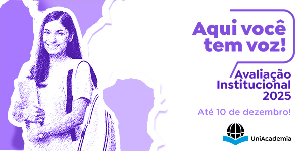 Mas você sabe para que serve uma avaliação institucional? A principal função dela é harmonizar, tranquilizar, apoiar, orientar, reforçar e corrigir os aspectos avaliados. Por isso, é muito importante que todos os alunos e alunas, professores e professoras respondam ao questionário anual. Afinal, com as suas respostas, o UniAcademia seguirá melhorando.
